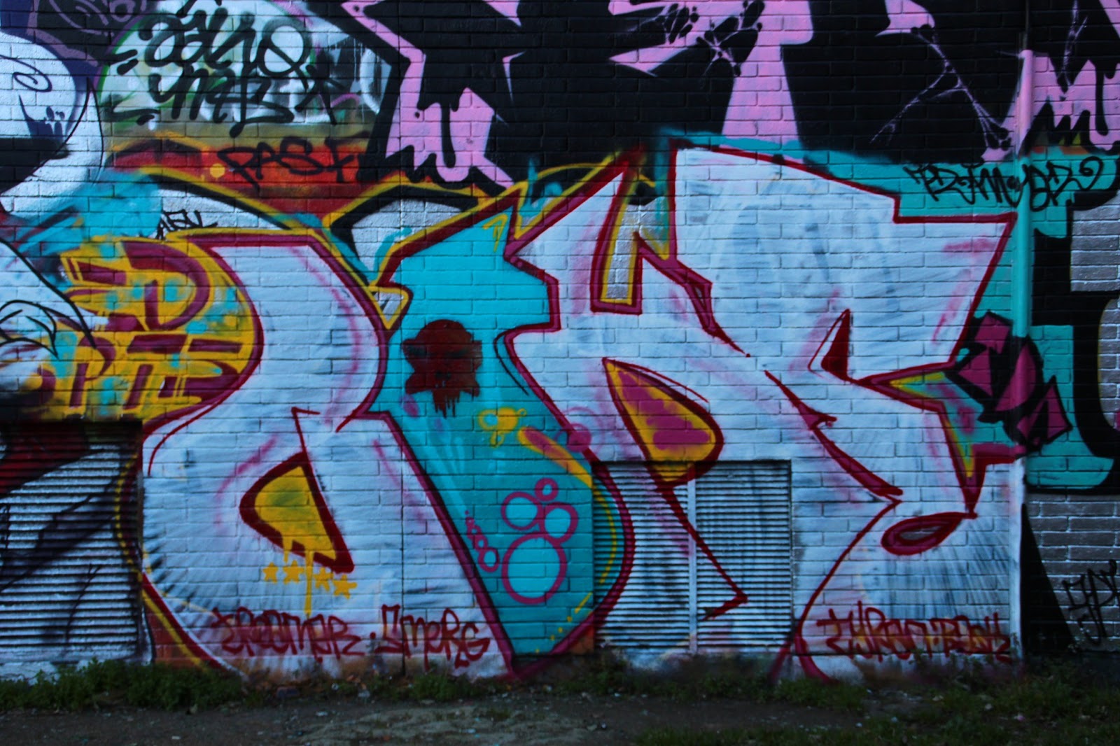 Sélection des photographies, argentiques et numériques, de peintures urbaines de l’artiste. Les images sont extraites de notre page dédiées aux archives du graffiti et street art Toulousain. Photographies : V. Bennes & B. Sécretin.