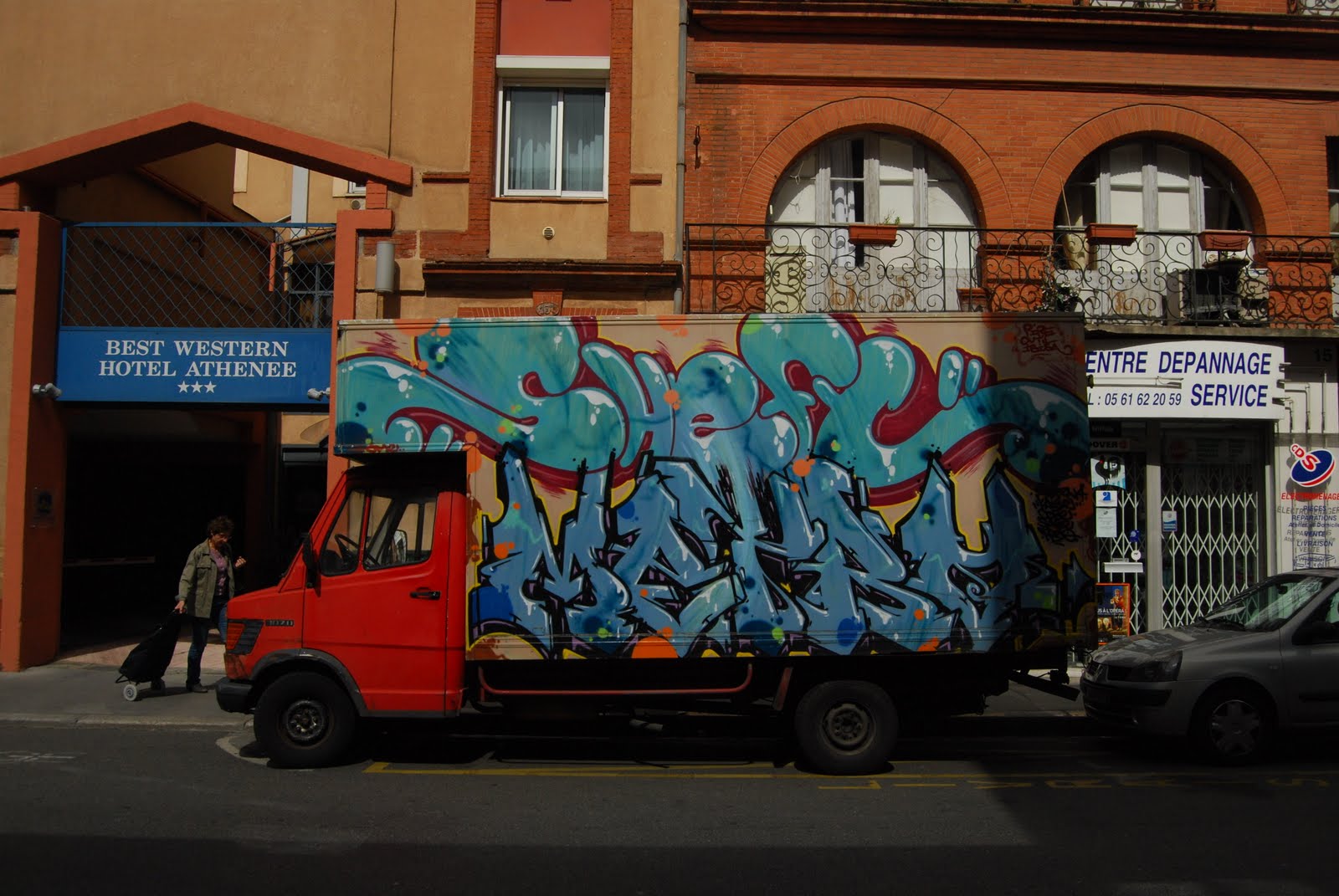 Sélection des photographies, argentiques et numériques, de peintures urbaines de l’artiste. Les images sont extraites de notre page dédiées aux archives du graffiti et street art Toulousain. Photographies : Boris Sécretin.