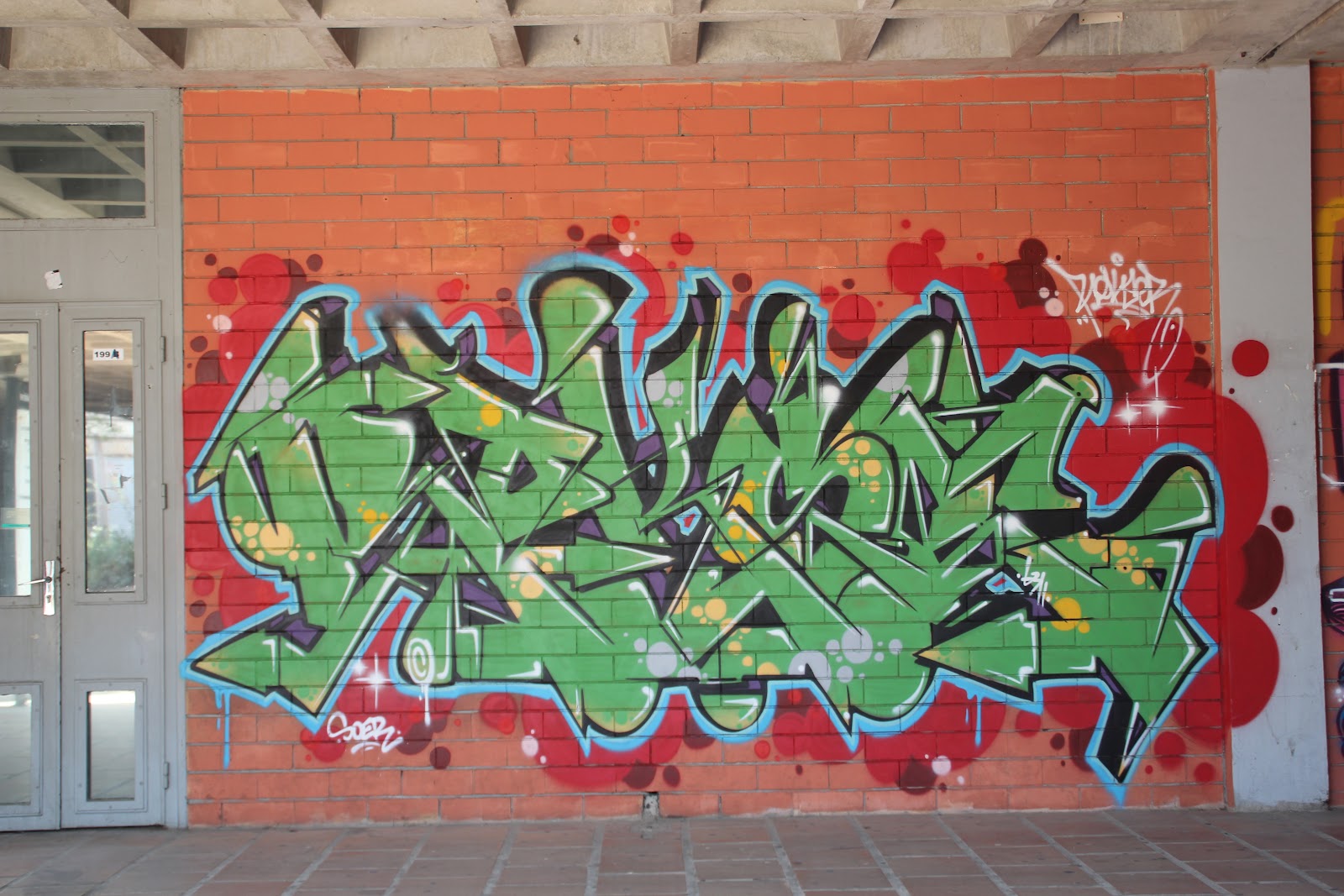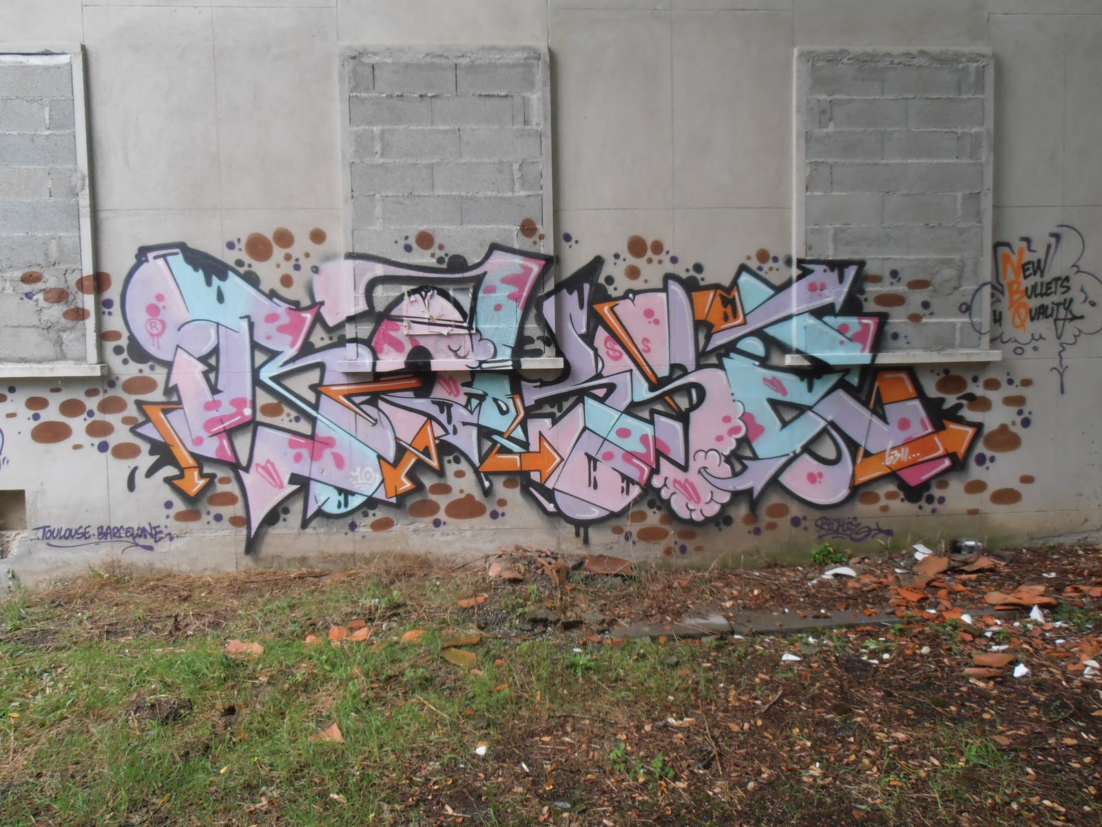 Sélection des photographies, argentiques et numériques, de peintures urbaines de l’artiste. Les images sont extraites de notre page dédiées aux archives du graffiti et street art Toulousain. Photographies : V. Bennes & B. Sécretin.