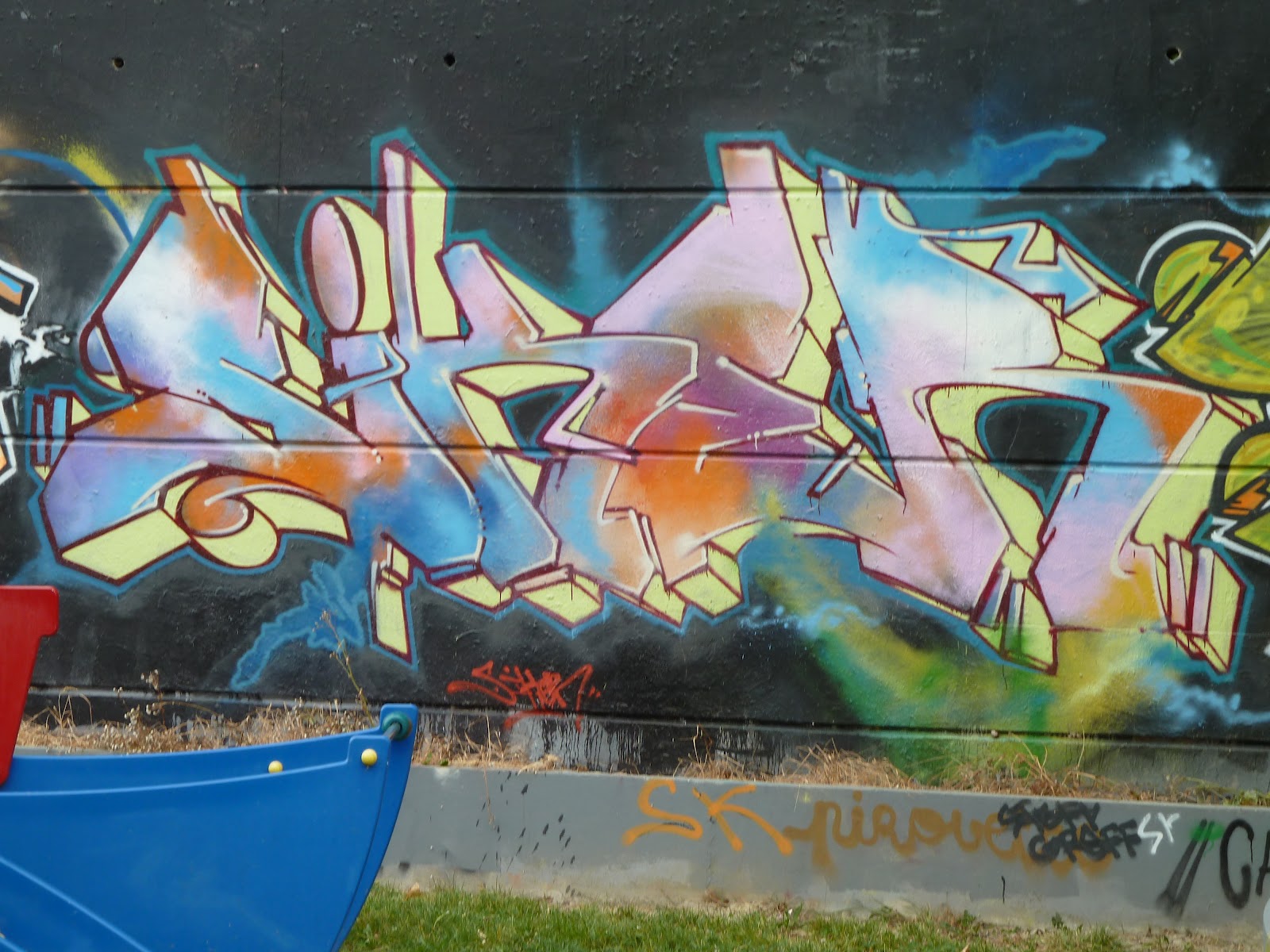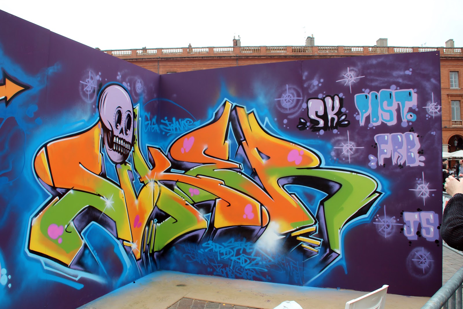 Sélection des photographies, argentiques et numériques, de peintures urbaines de l’artiste. Les images sont extraites de notre page dédiées aux archives du graffiti et street art Toulousain. Photographies : V. Bennes & B. Sécretin.