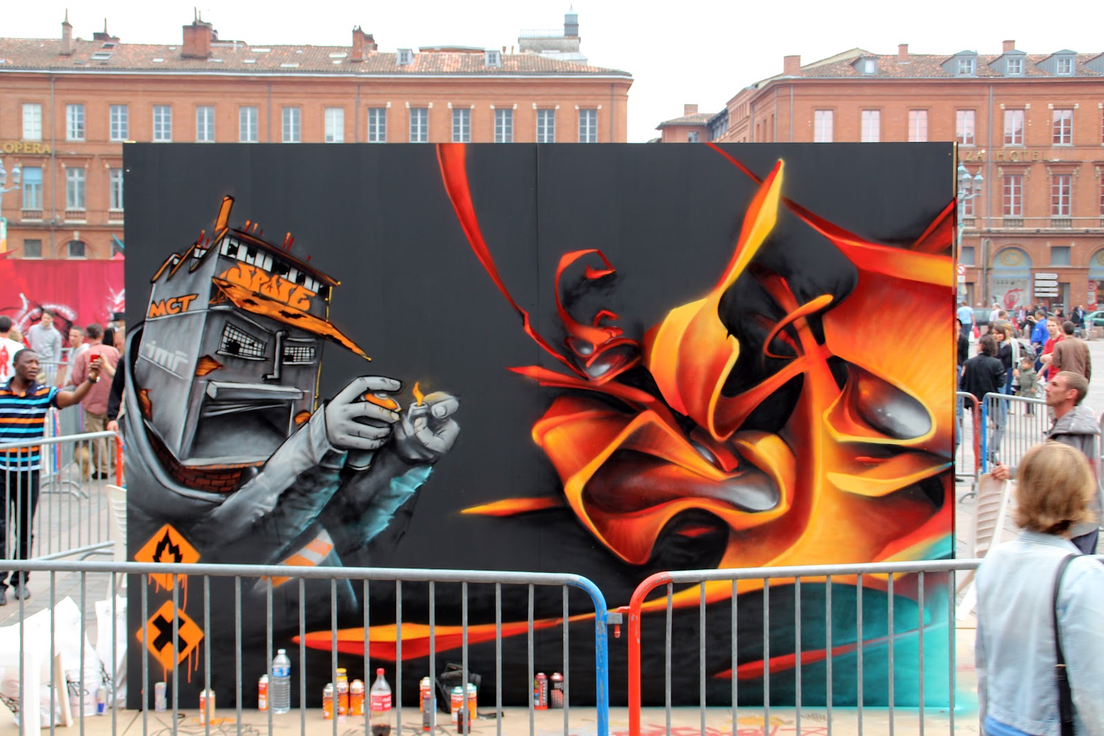 Sélection des photographies, argentiques et numériques, de peintures urbaines de l’artiste. Les images sont extraites de notre page dédiées aux archives du graffiti et street art Toulousain. Photographies : V. Bennes & B. Sécretin.