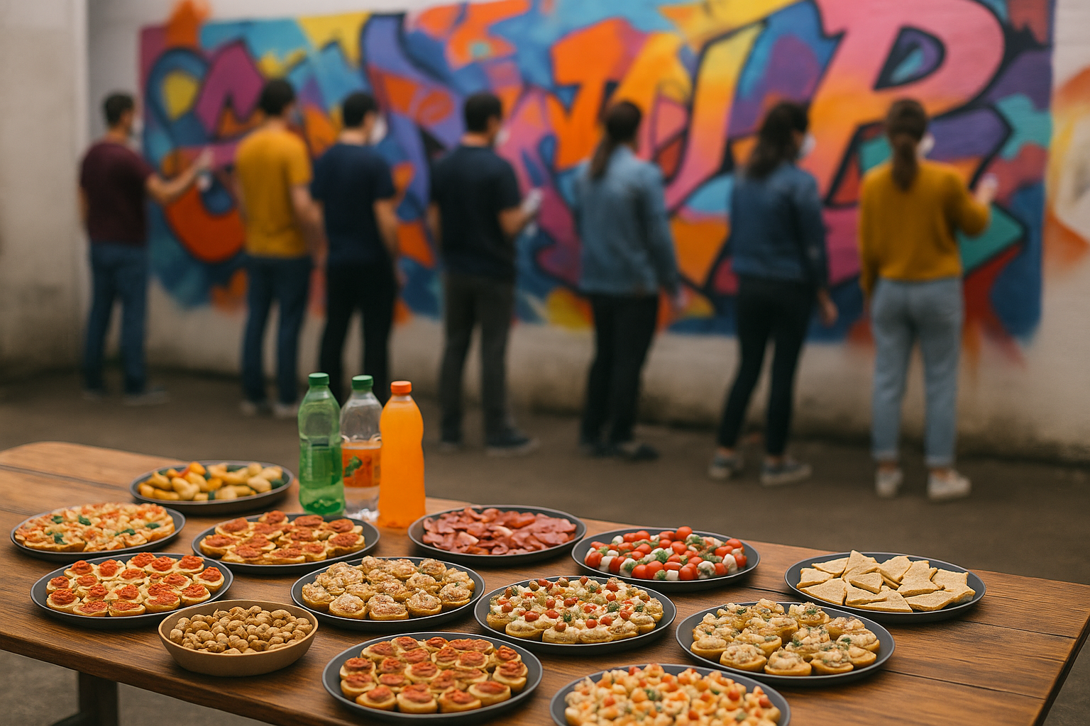 En fonction des objectifs internes et des disponibilités de supports, il est possible d’imaginer une création de fresque, une peinture murale ou un travail sur panneaux. L’entreprise co-construit le projet en amont : durée, format, thématique, degré d’implication, type de restitution visuelle. L’atelier devient ainsi un outil de cohésion et un moment marquant pour l’équipe, offrant une immersion authentique dans une pratique artistique contemporaine.